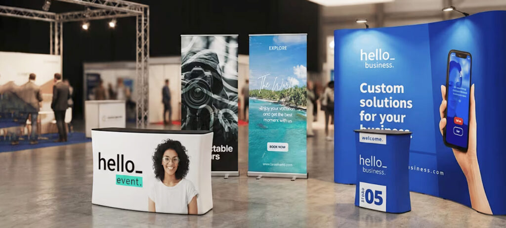 Create banners and signs you’ll display outdoors in front of your store or indoors at trade shows.
