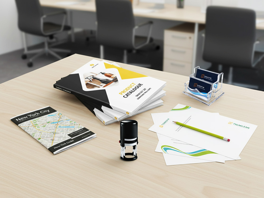 Business cards, brochures, flyers, and office stationery printing with high-quality finishing and professional design.