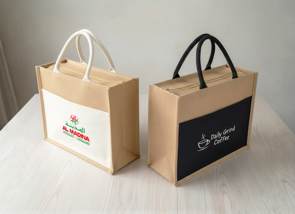 Looking for eco-friendly and stylish jute bag with canvas pocket printing in Dubai, UAE? At Printaplus, we offer premium custom jute bags with canvas pocket and logo printing, ideal for retail packaging, corporate giveaways, and sustainable branding across the UAE. These bags combine the natural strength of jute with the smooth printable surface of canvas, making them perfect for high-quality branding.