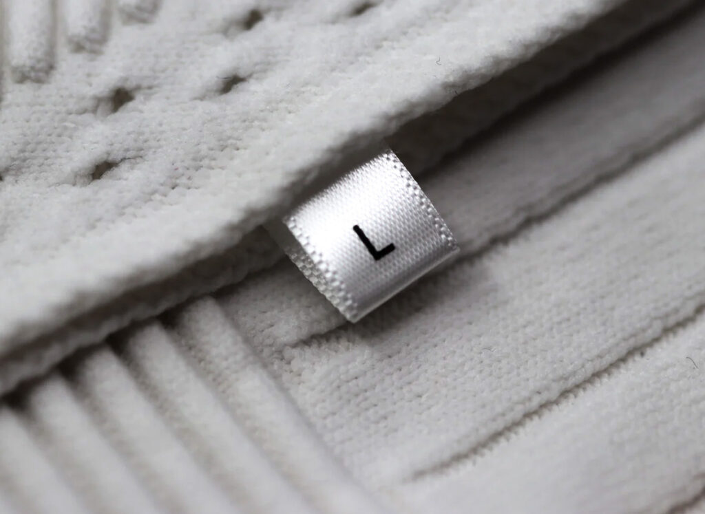 Satin size labels are a type of clothing tag made from satin fabric that specifically displays the size of the garment. These labels typically feature a simple, clear size designation such as “S,” “M,” “L,” “XL,” or numerical size ranges (like 2, 4, 6, etc.). They are often attached to the inner neck, waistband, or side seam of clothing.