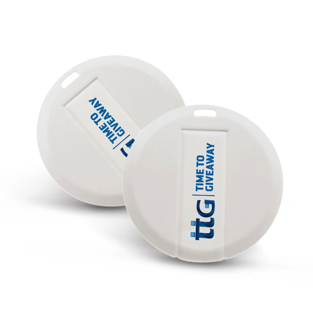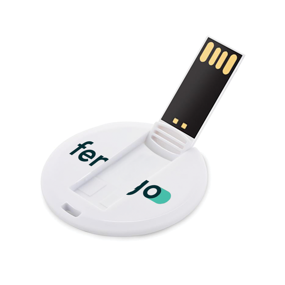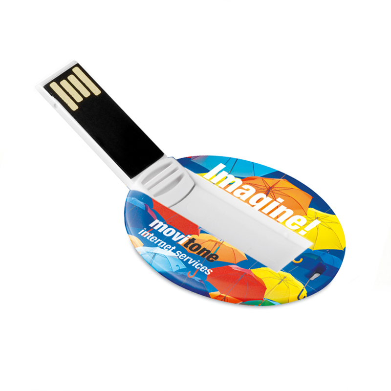 Looking for custom round USB flash drives in Dubai, UAE. Round card USBs are made of fine quality Plastic material. This pen drive can be bought in several of designs and It is a great Idea to have a collection of them. This flat, ultra-slim flash drive features a flip-out USB port and comes with free full color print on both sides.